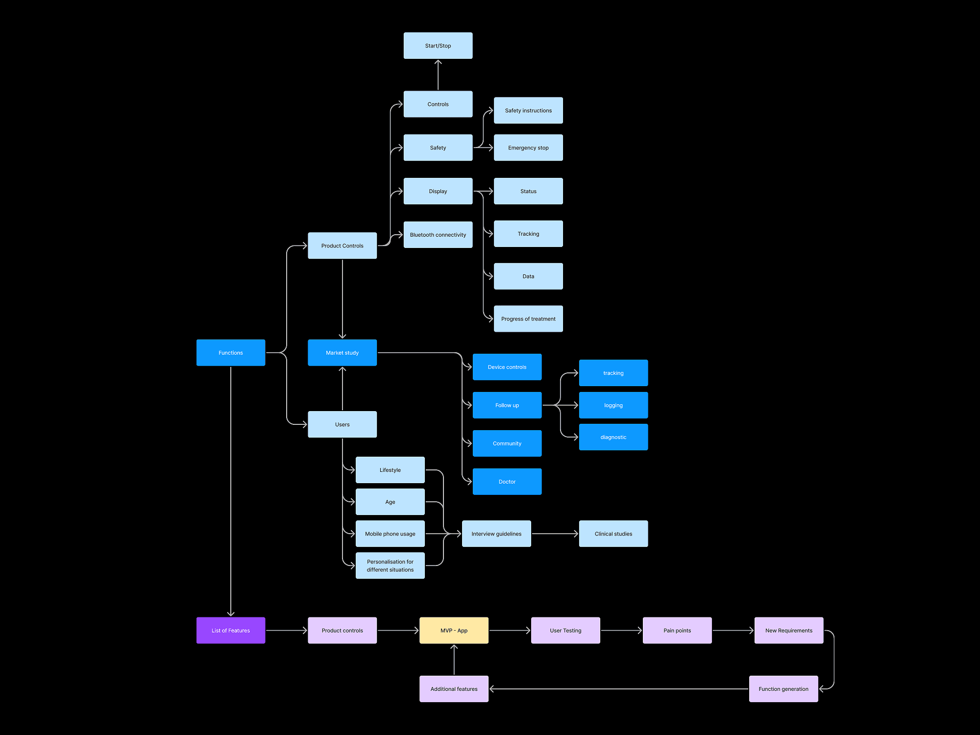 The product was at an early stage, with an existing hardware prototype but no user-centred application to control it. The team needed an MVP app that could communicate with the microcontroller, give users intuitive control over the device, and enable meaningful user testing. Designing for a sensitive medical condition required deep empathy with users who were often hesitant to discuss their experiences openly.