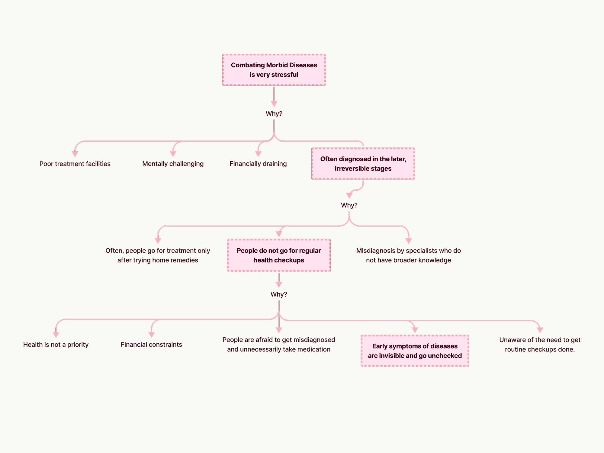 People above 40 in Bengaluru were avoiding regular health checkups despite being at risk for serious morbid diseases, largely because early symptoms are invisible and easy to dismiss. Fear of misdiagnosis, financial concerns, and a general lack of health awareness made the problem deeply behavioural, not just logistical. The design challenge was to create something that could motivate, remind, and emotionally support users toward consistent preventive care without feeling clinical or intimidating.