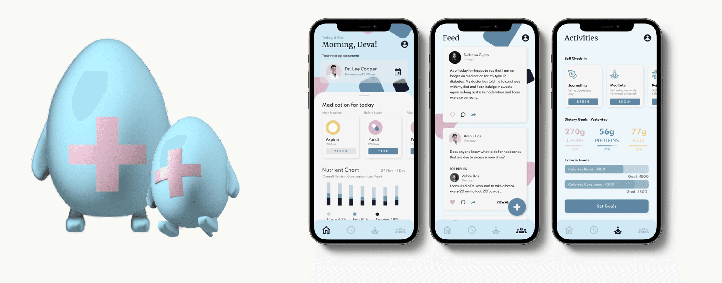 The project delivered a validated concept with a detailed final prototype spanning the physical figurine design, full app UI across home, feed, and activity screens, and a functional voicebot interaction. The solution addressed both the behavioural and logistical barriers to preventive healthcare for the 40+ demographic.